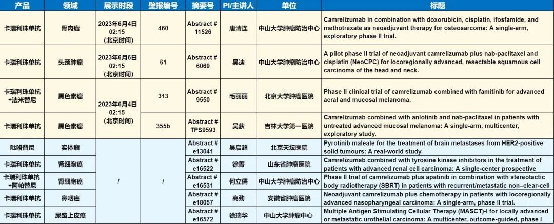 此外,在头颈肿瘤、黑色素瘤、骨肉瘤、鼻咽癌、肾细胞癌、尿路上皮癌等多个领域,卡瑞利珠单抗、吡咯替尼等产品相关研究一共入选了4项壁报展示和5项线上发表,彰显了九游会(J9)医药强大的自主研发综合实力。